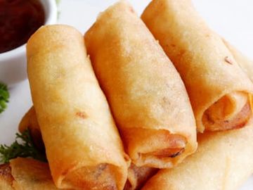 2 deep fried Vegetable spring rolls, serve with Sweet chili Sauce