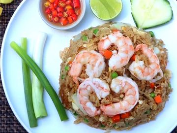 Real Crab Meat and 2 Pieces of jumbo Shrimps With Egg and Green Onion