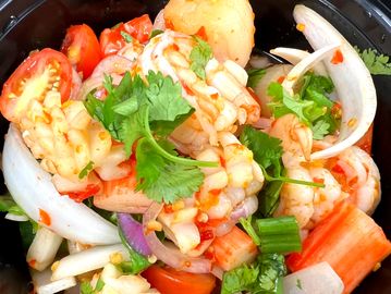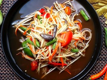 Green papaya with Thai style flavor, carrots, garlic, tomatoes, chili