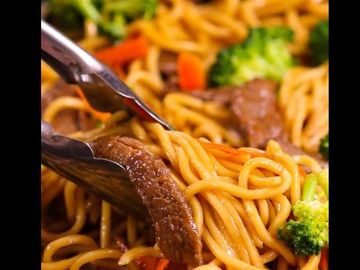 lo mein noodles add mix vegetable of carrots, broccolis, white onions and green onions